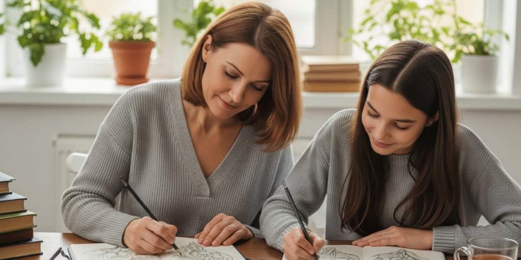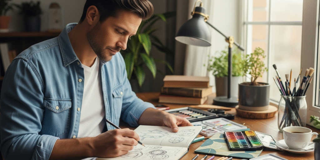 Um estudo de 2023, publicado no Frontiers in Psychology, mostrou que 20-30 minutos de desenho reduziram o estresse em participantes sem experiência artística, com queda nos níveis de cortisol e aumento de dopamina (Kaimal et al., 2023). Isso prova que qualquer um pode se beneficiar! Aqui vão cinco práticas simples para começar, mesmo sem talento para desenhar: